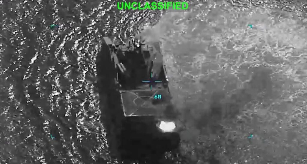 The sinking has drawn international attention as a bold demonstration of U.S. naval reach in the escalating standoff.