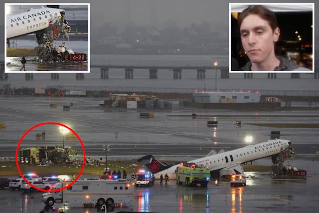 A survivor of the tragic runway collision at LaGuardia Airport has recounted the terrifying moments after an Air Canada jet crashed into a fire truck.