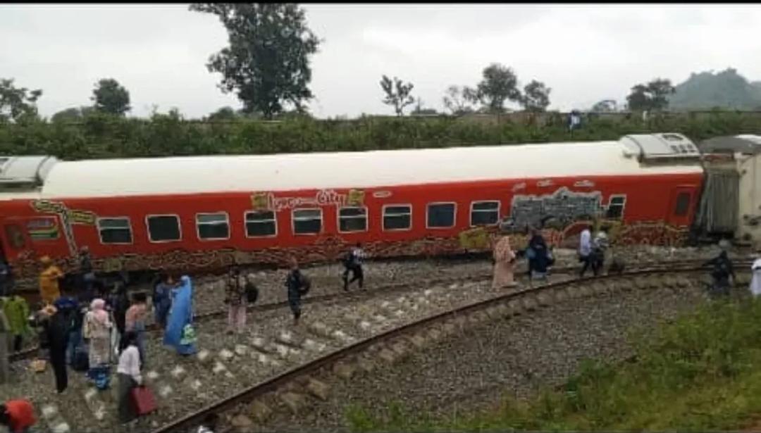 A passenger train travelling from Abuja to Kaduna derailed on Tuesday morning, leaving several carriages overturned and sparking panic among commuters.